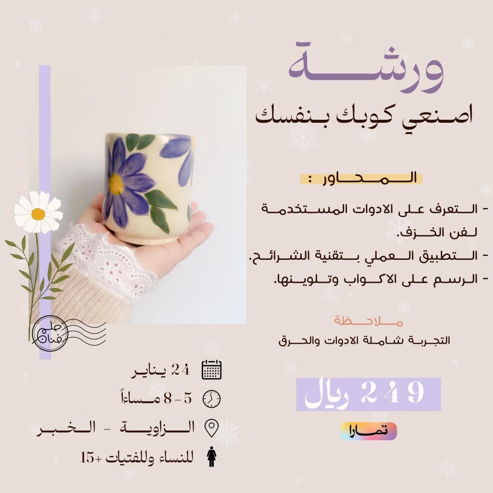 استمتعي بتجربة صناعة كوب فخاري وتلوينه مع حلم فنان